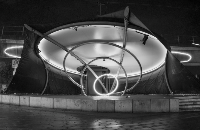 Schwarz-weiß-Fotografien und farbreduzierte Aufnahmen zeigen Architektur als stille Zeugin des Wandels – technisch, poetisch, melancholisch.